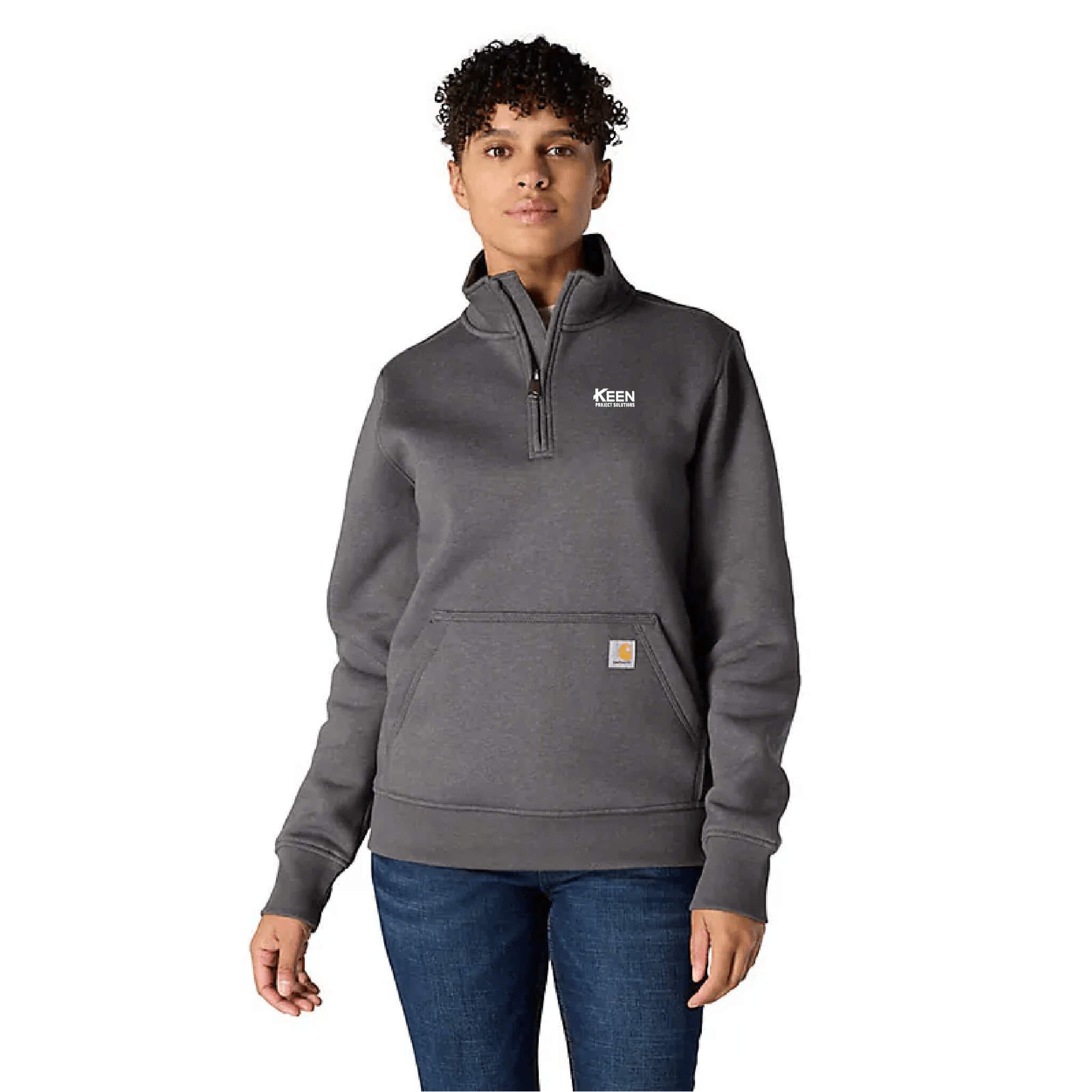 From early morning chores to late-night shifts, fight the chill in this women's quarter-zip sweatshirt. A midweight cotton blend offers everyday versatility, while a rib-knit waist and cuffs keep cold air out. Front pockets provide a place to warm your hands.